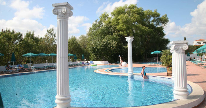 Pitoresc, strabatut de alei pietruite, care duc catre vile, complexul Holiday Village este cuibarit in mijlocul unui parc magnific si ofera o atmosfera linistita si relaxanta, ferita de zgomotul si agitatia statiunii. Pentru cei ce apreciaza intimitatea Holiday Village este alegerea perfecta.Facilitati camere