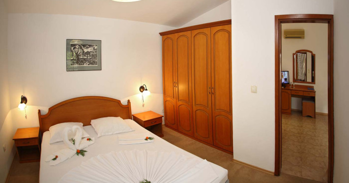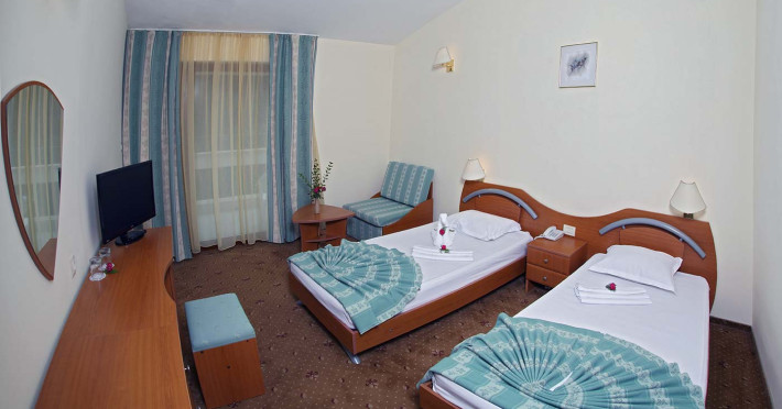 Camerele sunt dotate cu aer conditionat, seif, baie cu dus, frigider, telefon, televizor, baie cu dus, uscator de par, balcon.