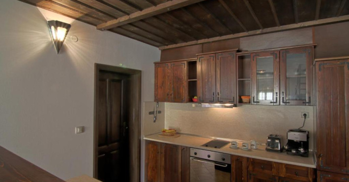 Casele au șemineu, bucătărie complet utilată, baie, balcon sau terasă cu acces la curtea interioară și garaj. Unele includ o saună. Unele camere au pereti cu piatră aparentă si lambriuri din lemn de culoare inchisă pe pereti si tavan.