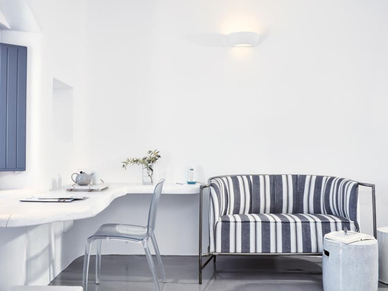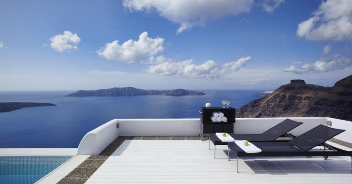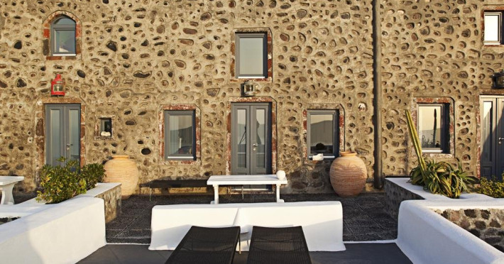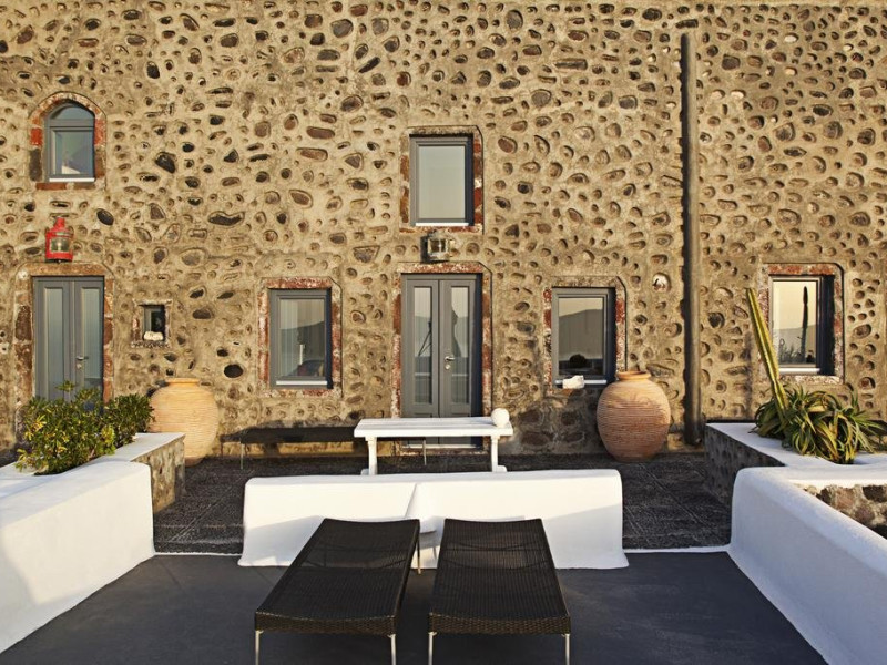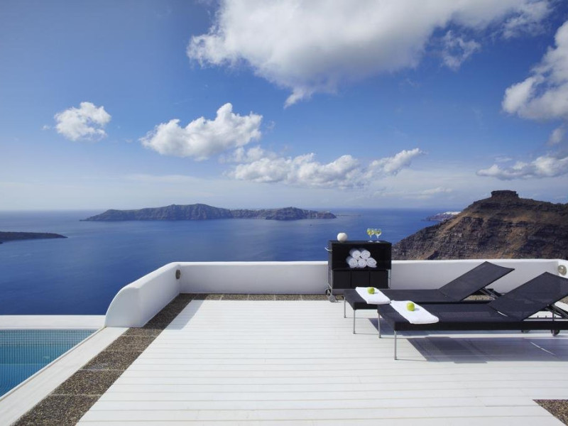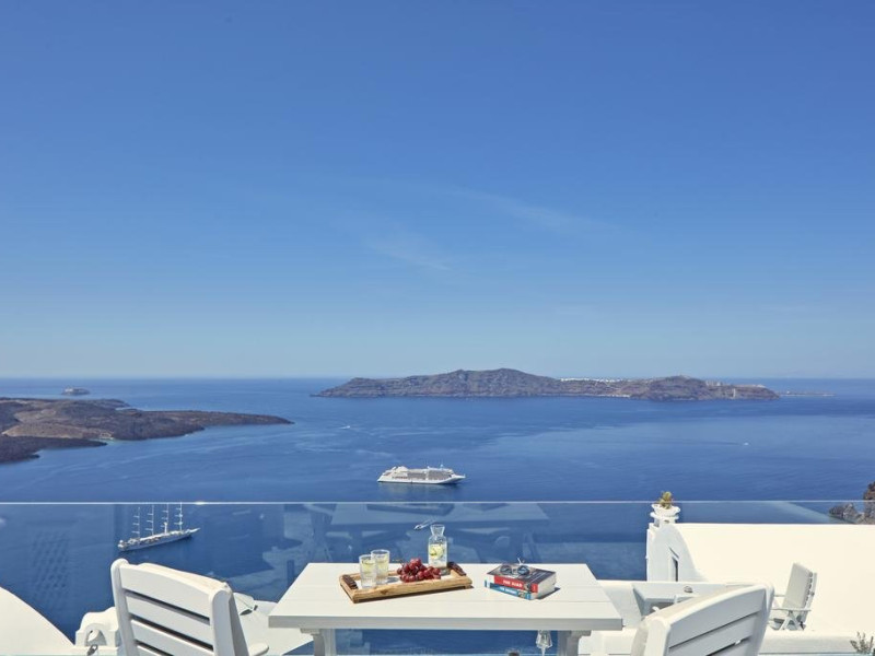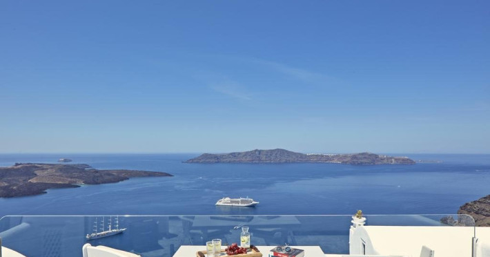 Hotelul este situat in Firostefani, la mai putin de 1 km de Fira, capitala insulei, 8 km de aeroport si 10 km de port.