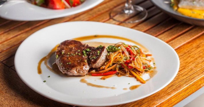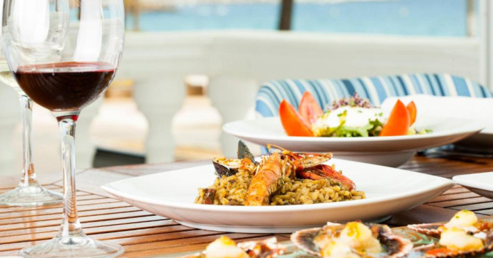 Restaurantul sezonier al hotelului oferă preparate din bucătăria mediteraneană și un mic dejun tip bufet. Există o gamă de feluri de mancare diferite din meniu.