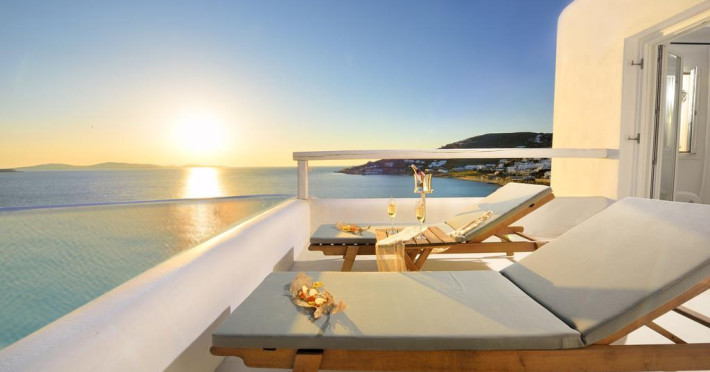 Amplasată în Agios Ioannis (Mykonos), la 350 m de plaja Agios Ioannis, Horizon Boutique este o proprietate de 3 stele care oferă o piscină în aer liber, terasă cu șezlonguri și umbrele de soare și unități de cazare cu aer condiționat. Proprietatea are servicii de recepție cu program non - stop, concierge și închirieri auto. Se oferă acces gratuit la internet Wi-fi în spațiile publice.