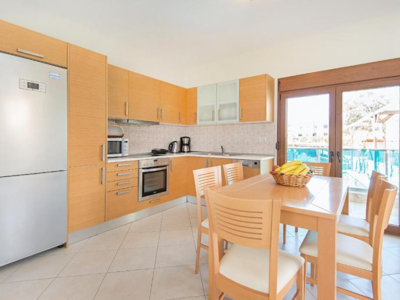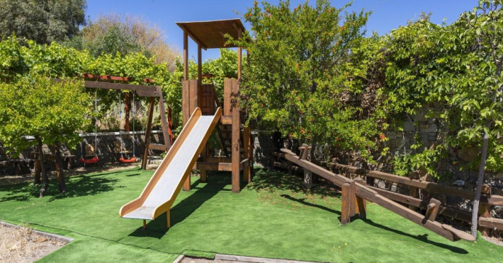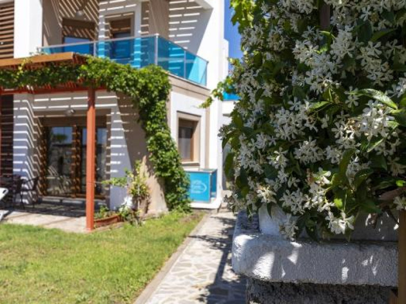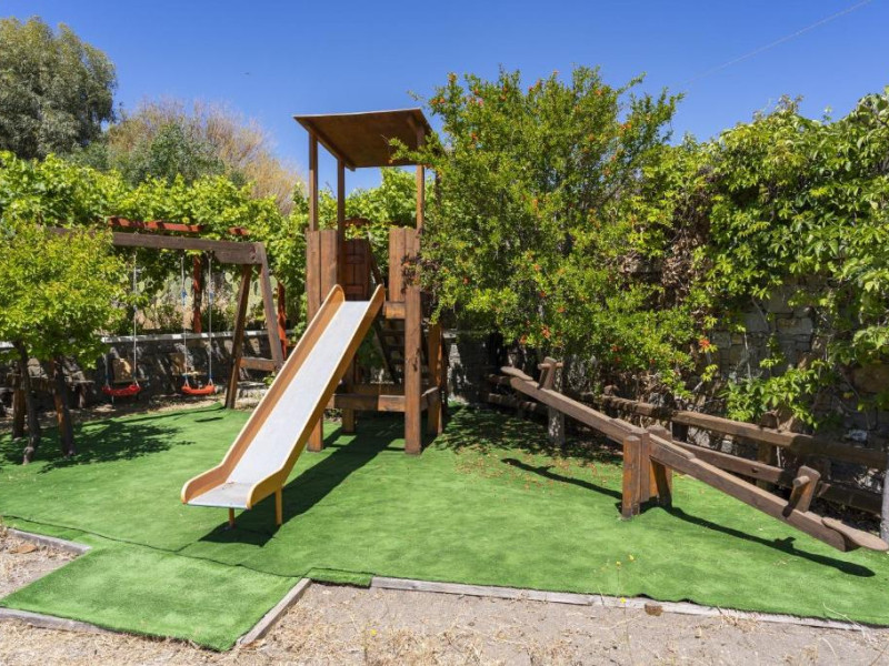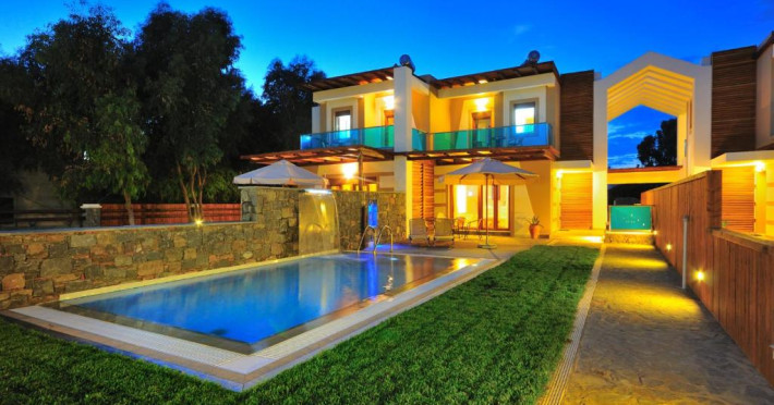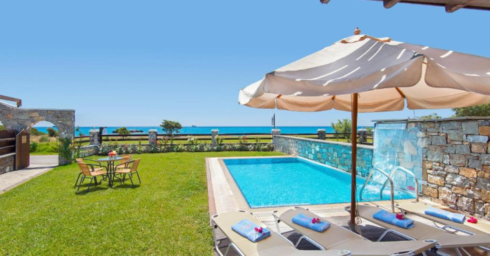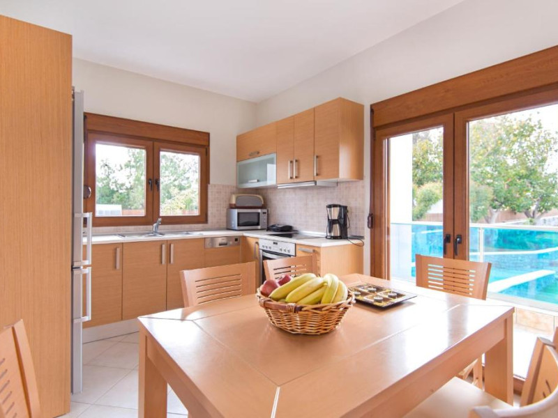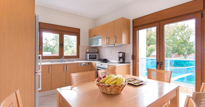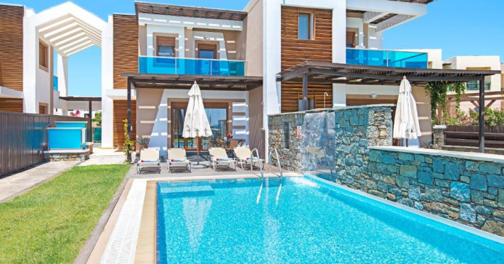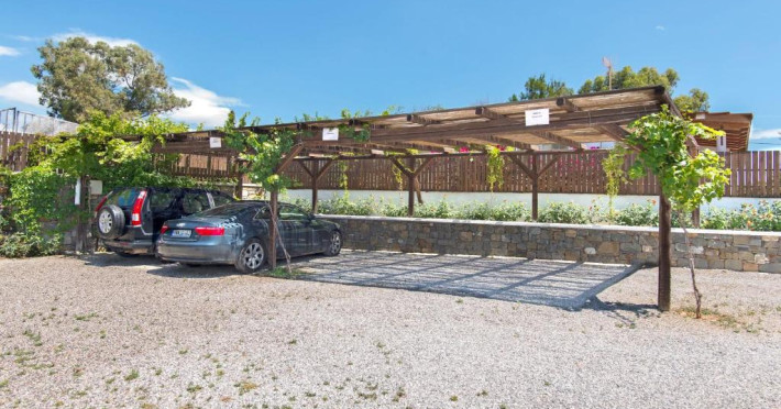 Fiecare vilă se deschide spre o terasă mobilată, pavată cu piatră, umbrită de o pergolă din lemn. Șezlonguri și un duș in aer liber se găsesc langă piscină. Facilități de grătar sunt disponibile și in grădină.