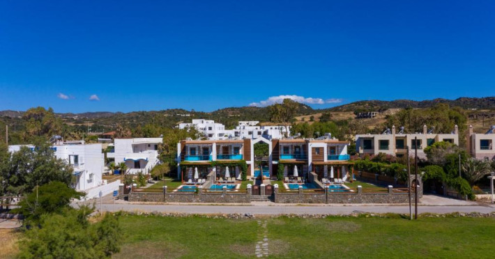 La doar 40 de metri de plaja Kiotari, Horizon Line este un complex de 4 vile complet utilate, cu piscine private. Fiecare vilă pe 3 niveluri beneficiază de Wi-Fi gratuit și este inconjurată de o grădină cu terasă din lemn mobilată. Acestea oferă vedere la mare și WiFi gratuit in toate zonele.