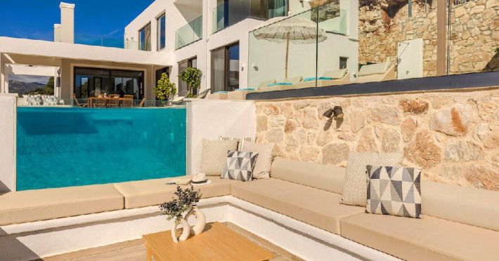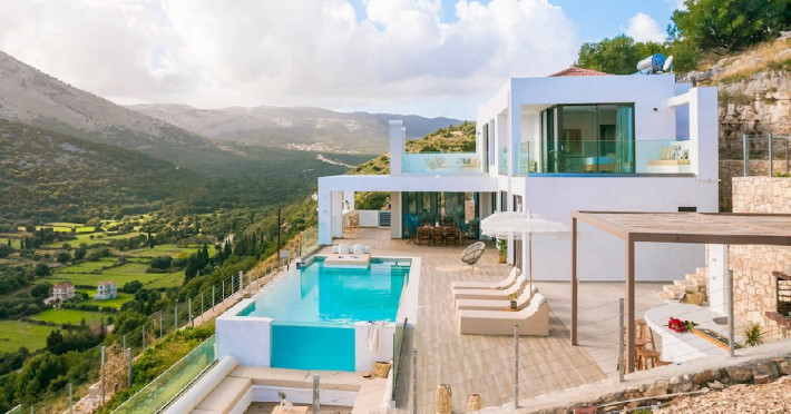 Descriere:Horizon Villas este un complex exclusivist de vile situat in zona Agia Efimia, pe insula Kefalonia, oferind o experienta de cazare eleganta si linistita intr-un cadru natural spectaculos. Complexul este amplasat pe un deal, oferind privelisti panoramice catre Marea Ionica si insulele din apropiere. Vilele sunt concepute intr-un stil modern si minimalist, imbinand designul contemporan cu mediul natural al insulei, fiind potrivite pentru familii sau grupuri de prieteni care cauta intimitate si relaxare.