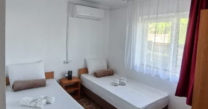Unitatea este structurata pe parter si doua etaje si dispune de 23 de camere confortabile: 6 camere duble cu pat matrimonial si 17 camere triple cu paturi individuale. Camerele sunt dotate cu aer conditionat, TV LCD, internet wireless, minibar/racitor si baie proprie cu dus. O parte dintre camere beneficiaza si de balcon.