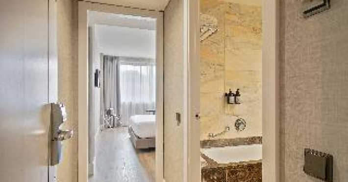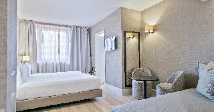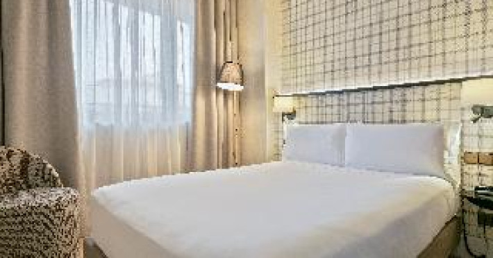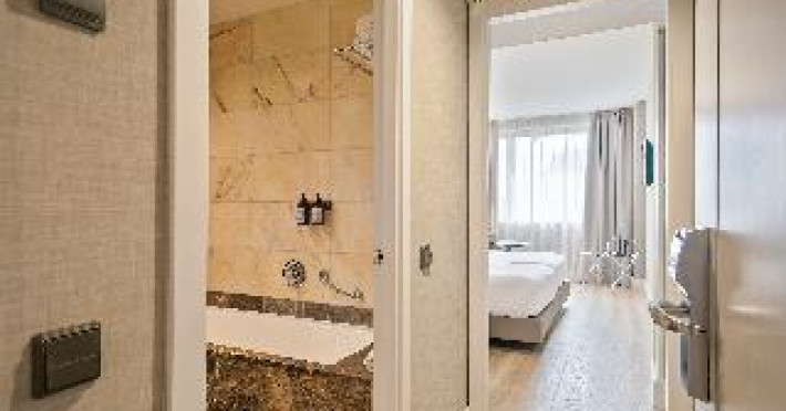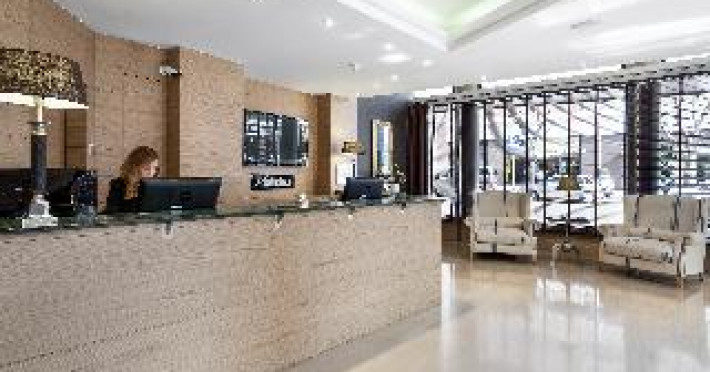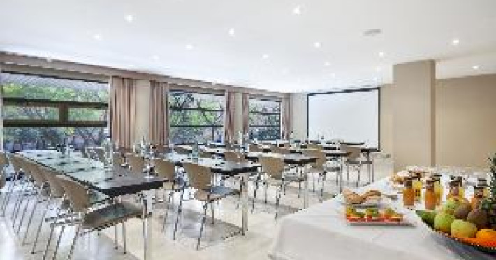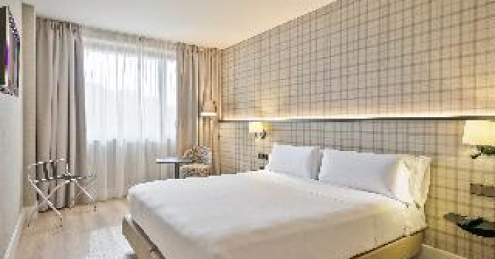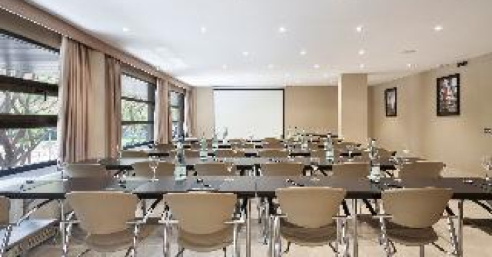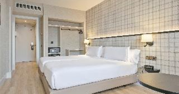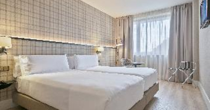 The modern hotel is conveniently located only 5 minutes' walking from the Sants train station, thus offering easy access to all areas of Barcelona. Montjuïc and Camp Nou, the stadium of FC Barcelona are within walking distance. The exhibition centre La Fira is close-by, the airport of El Prat can be reached within 30 minutes by car. Features of the hotel include 80 rooms, 24-hours reception, meeting rooms, free WIFI in the entire hotel, business centre, restaurant, bar and laundry service. When booking more than 5 rooms, special conditions and supplements may apply.The modern hotel is conveniently located only 5 minutes' walking from the Sants train station, thus offering easy access to all areas of Barcelona. Montjuïc and Camp Nou, the stadium of FC Barcelona are within walking distance. The exhibition centre La Fira is close-by, the airport of El Prat can be reached within 30 minutes by car. Features of the hotel include 80 rooms, 24-hours reception, meeting rooms, free WIFI in the entire hotel, business centre, restaurant, bar and laundry service. When booking more than 5 rooms, special conditions and supplements may apply.