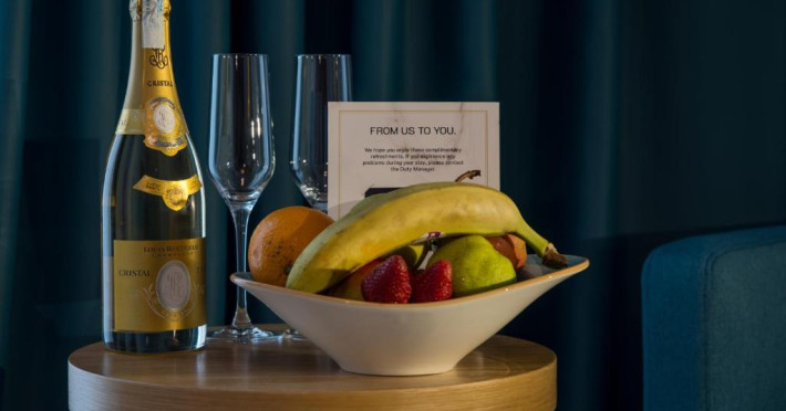 Restaurantul Admiral serveste un meniu international, iar oaspetii pot lua masa in interior si in aer liber, in grădina de vară. Sunt servite si specialităti locale. Barul de aperitive oferă o selectie de băuturi răcoritoare si alcoolice.