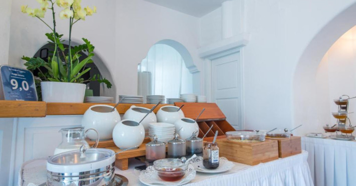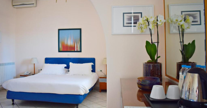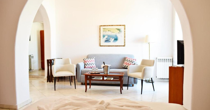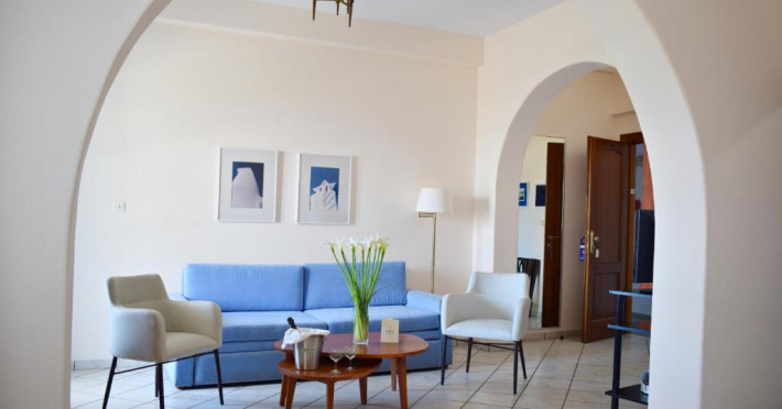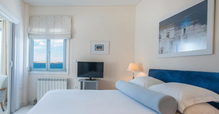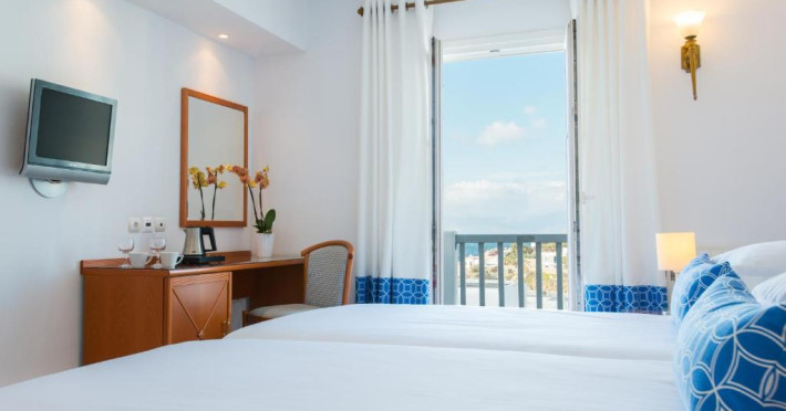 Camerele luminoase, decorate in nuanțe mediteraneene, dispun de balcoane private cu vedere spre orașul vechi sau mare. Terasa panoramică a hotelului este locul perfect pentru micul dejun tradițional grecesc sau pentru a admira apusul peste Marea Egee.