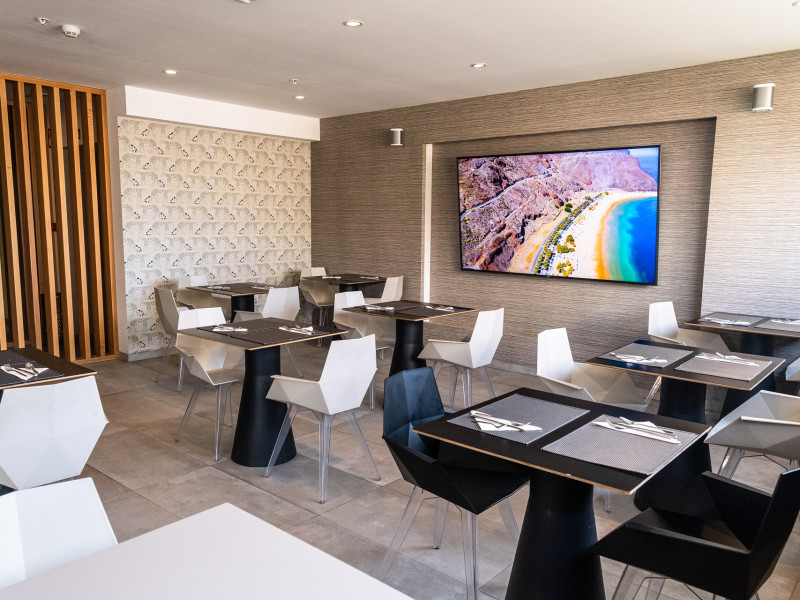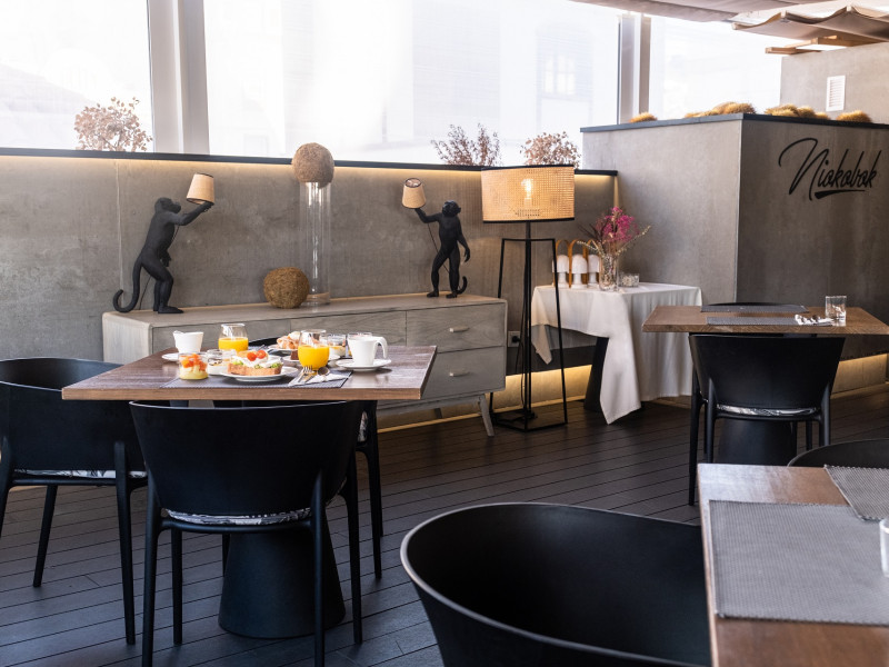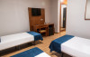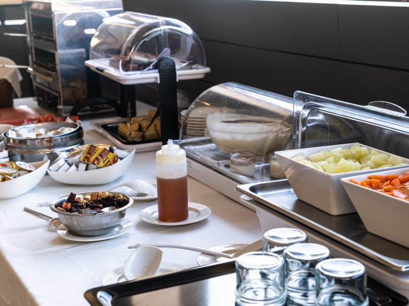 The accommodation Hotel Adonis Plaza is located approximately 10 km from a beach and about 500 m from the sea. The old town is around 1 km away. A supermarket is around 230 m away. Nearby there is a theatre which offers entertainment in high season. The GPS-verified hotel is equipped with a 24h reception (check-in is possible around the clock), a lobby, Wi-Fi, internet access, 2 lifts, a first aid kit as well as parking spaces (limited and for a fee). Furthermore, you can relax outdoors on the terrace. You can store your valuables in the safe, and your luggage in the hotel`s storage room. In addition, the hotel Hotel Adonis Plaza is video-monitored 24h a day. For very young guests, kid`s chairs can be provided. There is also a laundry and ironing service. Ironing equipment can also be borrowed at the hotel. For your comfort there is a concierge service. The energy supply is 220, 110, 120 and 230 Volts. For conventions and other business meetings, the hotel offers a conference area with a total of 30 seats, a reception, tables, printer, scanner, overhead projector, internet access as well as a catering service. At the hotel reception, tickets are offered for excursions in the area. Pets are allowed (only dogs and cats up to 8 kg, on request). In your hotel, a lot of focus is placed on sustainability. This includes the hotel`s own recycling bins and the provision of soap and shampoo dispensers. American Express, Euro/Master Card and Visa are accepted as means of payment. Due to its barrier-free facilities , such as a sliding door in the entrance area, a hotel door that can be opened manually, separate, barrier-free entrances, wheelchair accessible rooms and wheelchair-accessible bathrooms, the hotel is also suitable for wheelchair users. Catering As catering services the hotel offers breakfast only. Breakfast is offered from the buffet or à la carte (extras on request). Your physical well-being is catered for by a restaurant (gluten-free dishes) and the cafeteria. Distances