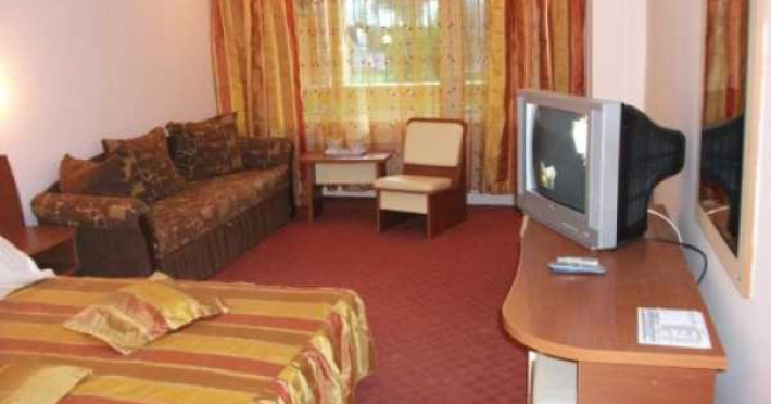 Facilități cameră dublă: pat matrimonial sau twin, baie proprie cu cadă sau duș, aer condiționat, frigider, televizor, telefon, internet Wifi, balcon.