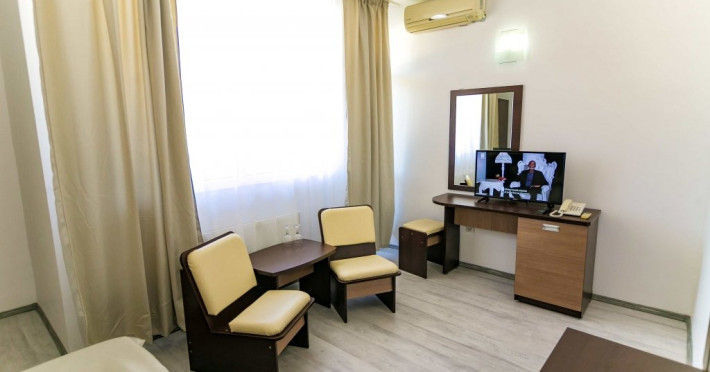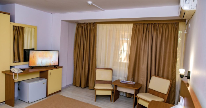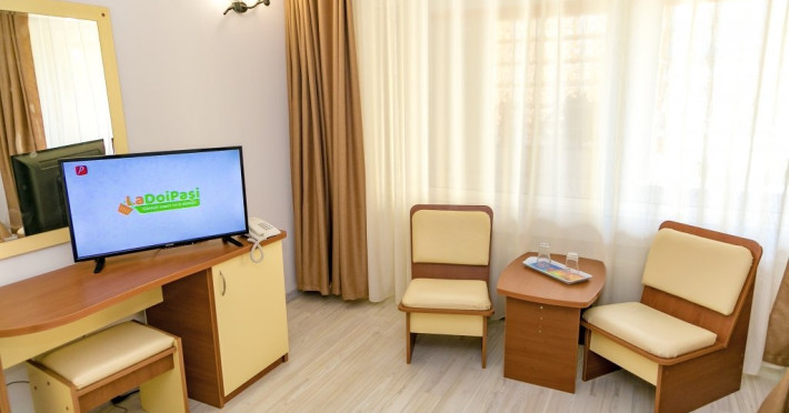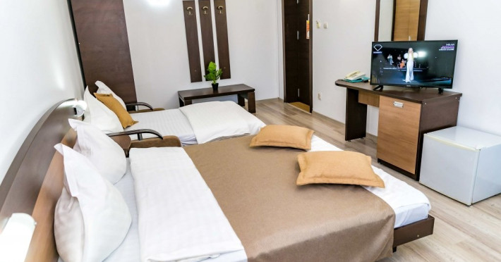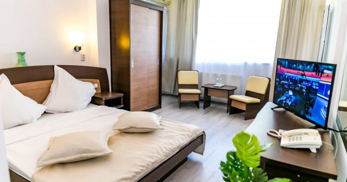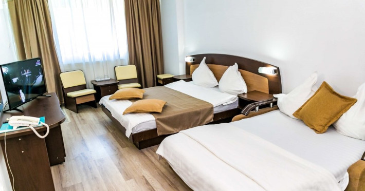 Dotari camere: parchet, aer conditionat, minibar (frigider), telefon, uscator de par, TV, internet wireless - gratuit, baie proprie cu cabina de dus, balcoane (la un anumit nr. de camere) cu masuta si scaune de relaxare.