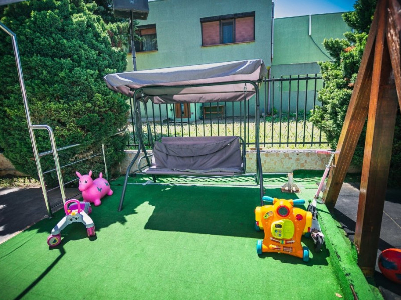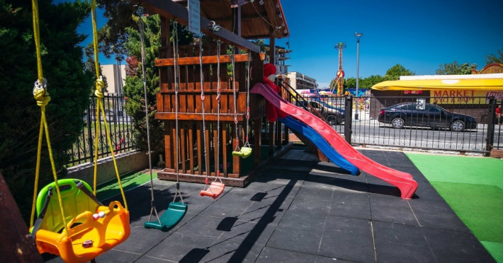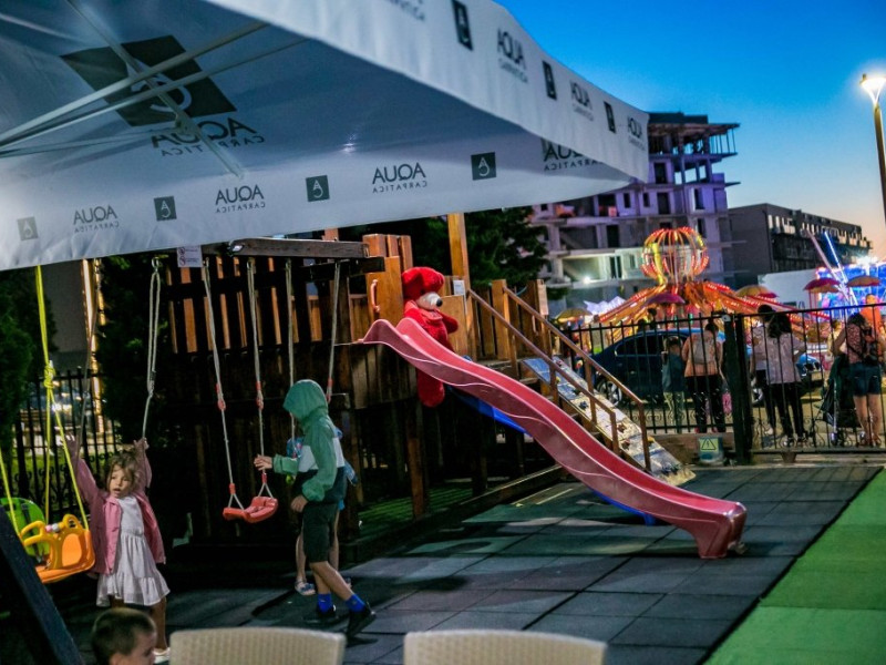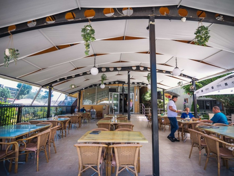 Restaurant ( 40 locuri) cu terasa acoperita (72 locuri) si terasa in aer liber (90 locuri), loc de joaca pentru copii 3-12 ani, parcare proprie, gratuita in limita locurilor disponibile.