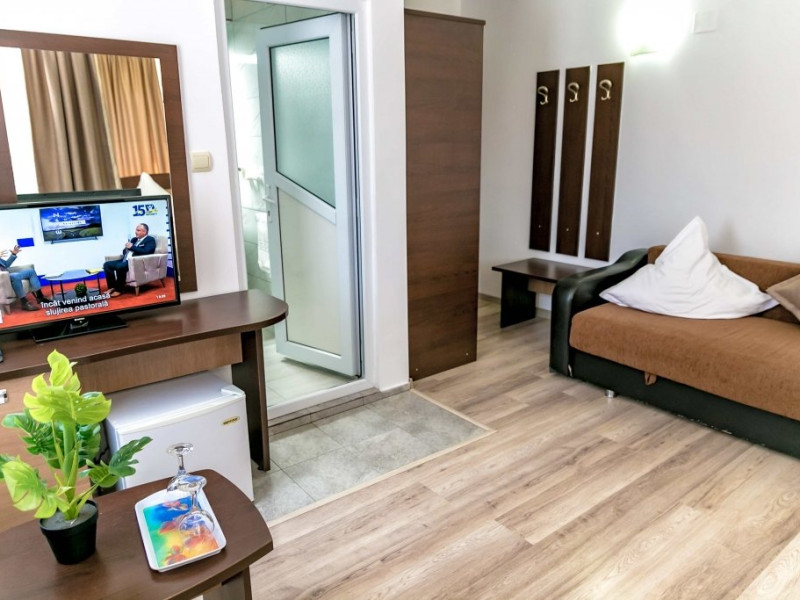 - 1 garsoniera cu doua paturi matrimoniale: un pat de 140/200 cm si un pat de 160/200 cm)