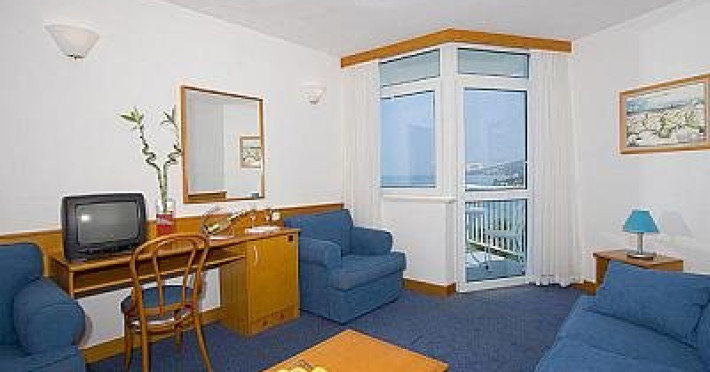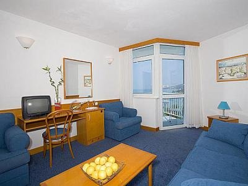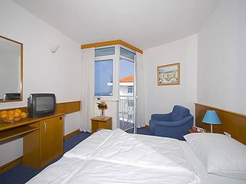 Hotelul dispune de trei tipuri de camere,cele premier sunt situate la 50 m de cladirea principala a hotelului. Acest tip de camera este conceput ca vila cu 2 etaje. Camerele confort si premier au vedere directa la mare iar camerele standard sunt cu vedere partiala la mare sau la parc. Toate camerele sunt dotate cu TV, aer conditionat, mini bar si balcon.