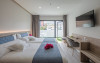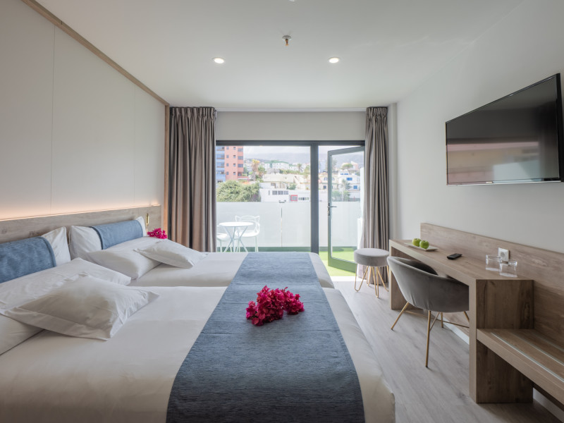 Around 300 m from a public sandy/pebble/rocky beach lies the hotel Hotel Valle Orotava. The nearest bars and restaurants can be found at a distance of around 70 m. Nearby there is a disco which offers entertainment in high season. The beach is patrolled by a lifeguard and awarded a blue flag. Directly next to the beach there is a promenade where you can take leisurely walks. The air-conditioned, GPS-verified hotel has a 24h reception (check-in is possible around the clock), a lobby bar, Wi-Fi, internet access, 2 lifts as well as a first aid kit. In the outdoor area you will find a salt water pool (open all year), where sun loungers and pool towels are available for free. Furthermore, outside you can find a sun terrace on the roof of the building. You can store your valuables in the safe, and your luggage in the hotel`s storage room. In addition, the hotel Hotel Valle Orotava is video-monitored 24h a day. For very young guests, kid`s chairs can be provided). There is also a laundry service. For your comfort there is a concierge service. The rooms are cleaned. If necessary, you can contact the medical centre. The energy supply is 220 Volts. If you want to explore the holiday region, you can use the car and motorbike rental service close to the hotel (extra fee). At the reception, tickets are offered for excursions in the area. For guests on their honeymoon, the hotel has special offers such as champagne in the room. American Express and Euro/Master Card are accepted as means of payment. Due to its barrier-free facilities , such as barrier-free entrances, wheelchair accessible rooms and wheelchair-accessible bathrooms, the hotel is also suitable for wheelchair users. Catering As catering services the hotel offers half board and breakfast only. Breakfast is offered from the buffet. Dinner is also served as a buffet (extras on request). For the meals, there are a buffet restaurant (calorie-reduced, gluten-free and vegetarian dishes) and 2 bars, the cafeteria as well as the pool bar. Distances- Nearest town: approx. 35 km