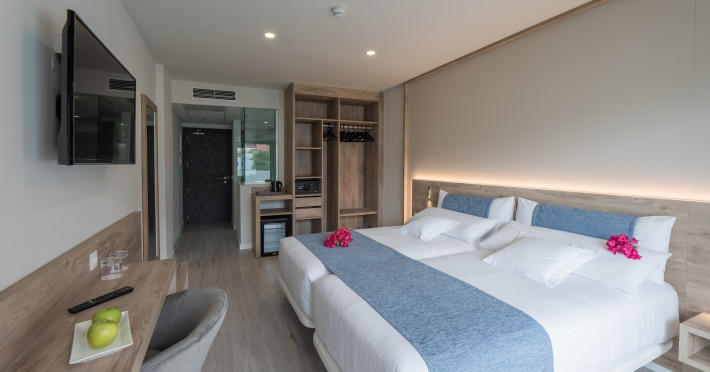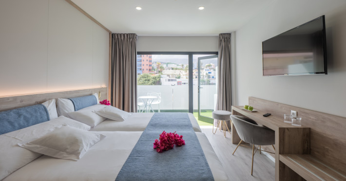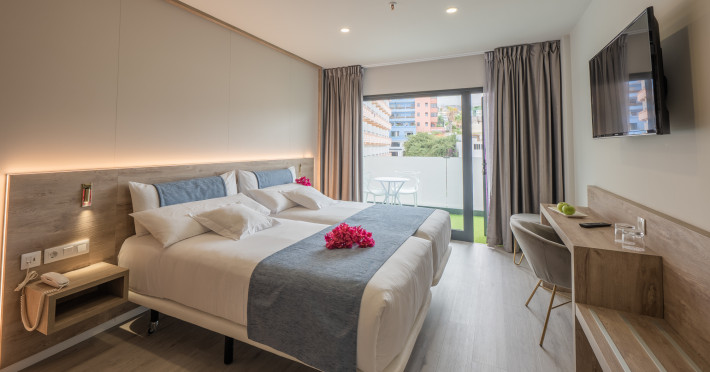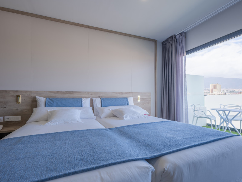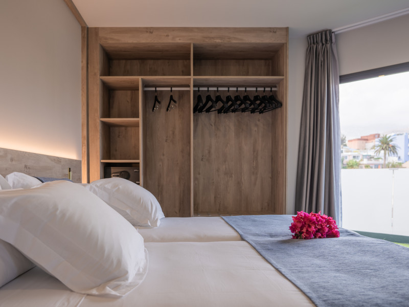 Around 300 m from a public sandy/pebble/rocky beach lies the hotel Hotel Valle Orotava. The nearest bars and restaurants can be found at a distance of around 70 m. Nearby there is a disco which offers entertainment in high season. The beach is patrolled by a lifeguard and awarded a blue flag. Directly next to the beach there is a promenade where you can take leisurely walks. The air-conditioned, GPS-verified hotel has a 24h reception (check-in is possible around the clock), a lobby bar, Wi-Fi, internet access, 2 lifts as well as a first aid kit. In the outdoor area you will find a salt water pool (open all year), where sun loungers and pool towels are available for free. Furthermore, outside you can find a sun terrace on the roof of the building. You can store your valuables in the safe, and your luggage in the hotel`s storage room. In addition, the hotel Hotel Valle Orotava is video-monitored 24h a day. For very young guests, kid`s chairs can be provided). There is also a laundry service. For your comfort there is a concierge service. The rooms are cleaned. If necessary, you can contact the medical centre. The energy supply is 220 Volts. If you want to explore the holiday region, you can use the car and motorbike rental service close to the hotel (extra fee). At the reception, tickets are offered for excursions in the area. For guests on their honeymoon, the hotel has special offers such as champagne in the room. American Express and Euro/Master Card are accepted as means of payment. Due to its barrier-free facilities , such as barrier-free entrances, wheelchair accessible rooms and wheelchair-accessible bathrooms, the hotel is also suitable for wheelchair users. Catering As catering services the hotel offers half board and breakfast only. Breakfast is offered from the buffet. Dinner is also served as a buffet (extras on request). For the meals, there are a buffet restaurant (calorie-reduced, gluten-free and vegetarian dishes) and 2 bars, the cafeteria as well as the pool bar. Distances