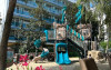 Dotari generale: 6 nivele (parter si 5 etaje); restaurant cu o capacitate de 500 locuri; receptie spatioasa si luminoasa, deschisa 24/24, dotata cu aer conditionat, televizor LED, free WI-FI; lobby bar; parcare privata monitorizata video (capacitate 160 locuri, cost 10 Lei/ zi autoturism); parc cu zona verde; spatiu de joaca amenajat pentru copii; sala de sport; teren de baschet, teren cu tatami; piscina exterioara; seif la receptie; camera pentru bagaje.