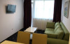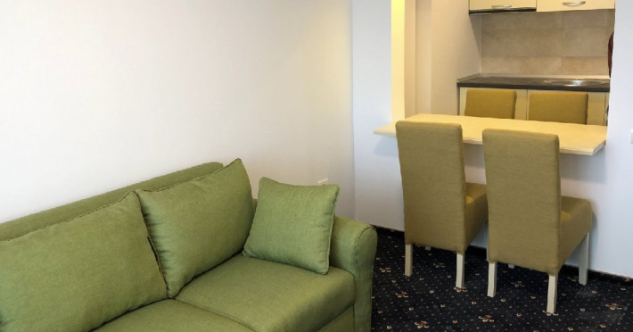 Apartamentele au o suprafata de 44 m2, doua balcoane, sunt luminoase si confortabile, dispun de living cu chicineta, canapea extensibila, telefon, televizor LCD minibar, birou, precum si un dormitor cu pat dublu matrimonial.