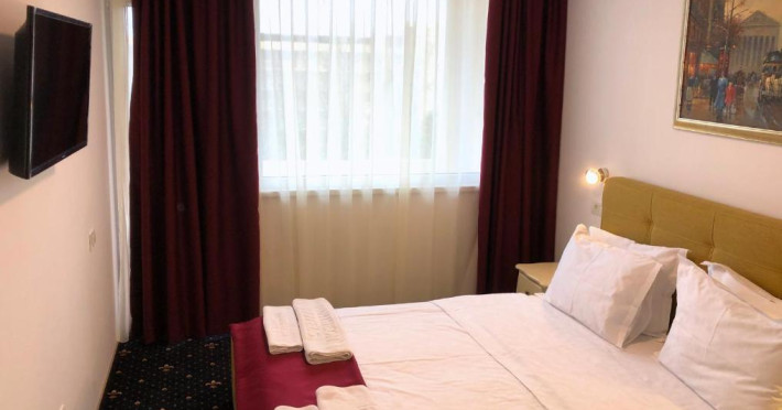 Facilități cameră dublă: pat matrimonial sau twin, baie proprie cu cadă sau duș, aer condiționat, televizor, uscător de păr, internet Wifi, balcon.