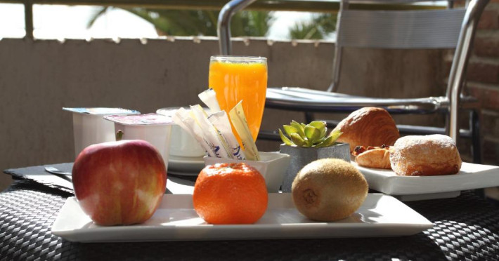 Restaurantul servește mancăruri spaniole à la carte și oferă vedere la mare. La bar sunt disponibile tapas și pinchos.