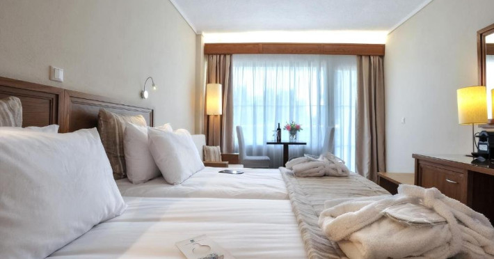Hotelul Alexander the Great Beach are o piscina mare, un teren de tenis cu nocturna si vedere spectaculoasa la plaja cu nisip Kriopigi. Exista un lift care asigura acces facil la plaja, unde sunt disponibile sezlonguri si umbrele de soare, la un cost suplimentar. Oaspetii beneficiaza de WiFi gratuit In toate zonele hotelului.Unitatile de cazare de la Hotelul Alexander the Great Beach sunt dotate cu aer conditionat, TV prin satelit si minibar. Fiecare unitate are balcon mobilat, cu vedere la mare sau la Imprejurimile luxuriante.