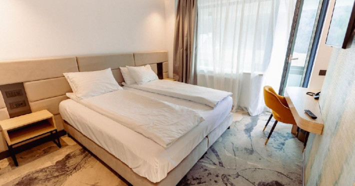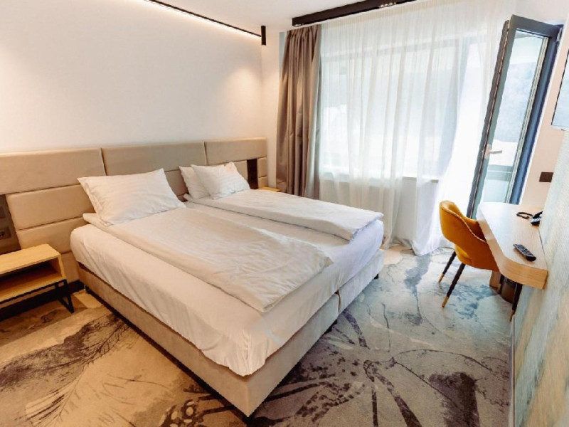 Camerele deluxe fara balcon au vedere spre munte, iar cele cu balcon au vedere spre centrul orasului Sinaia.