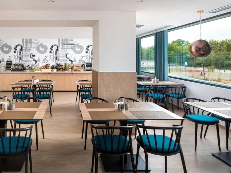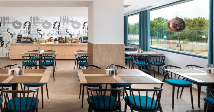 Restaurant Sallago este amenajat pentru servirea micului dejun.
