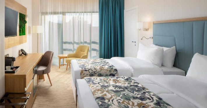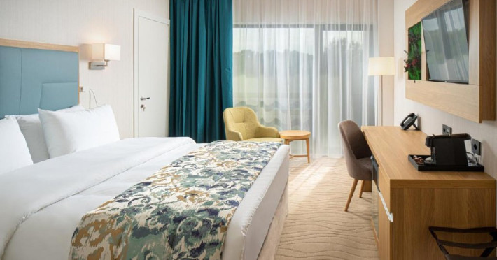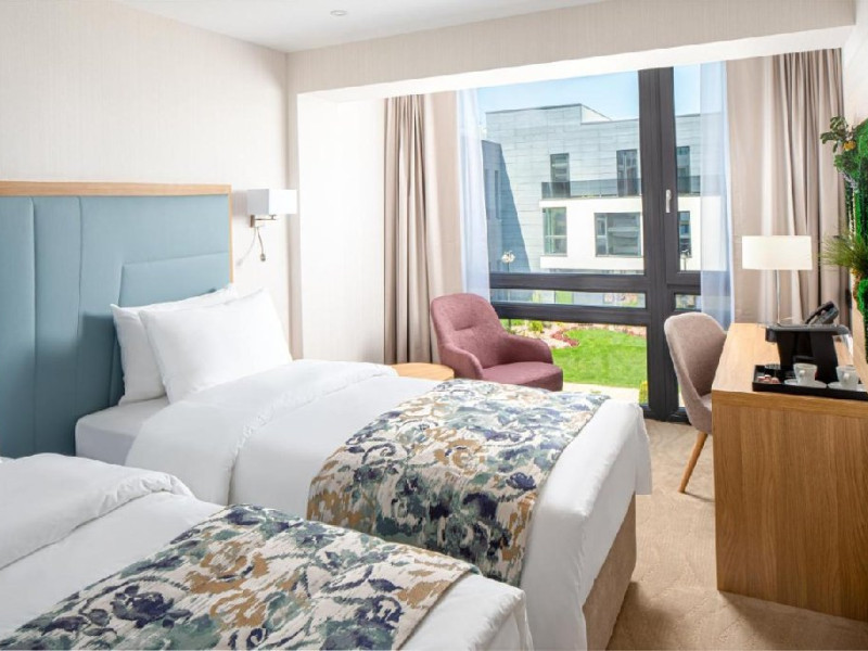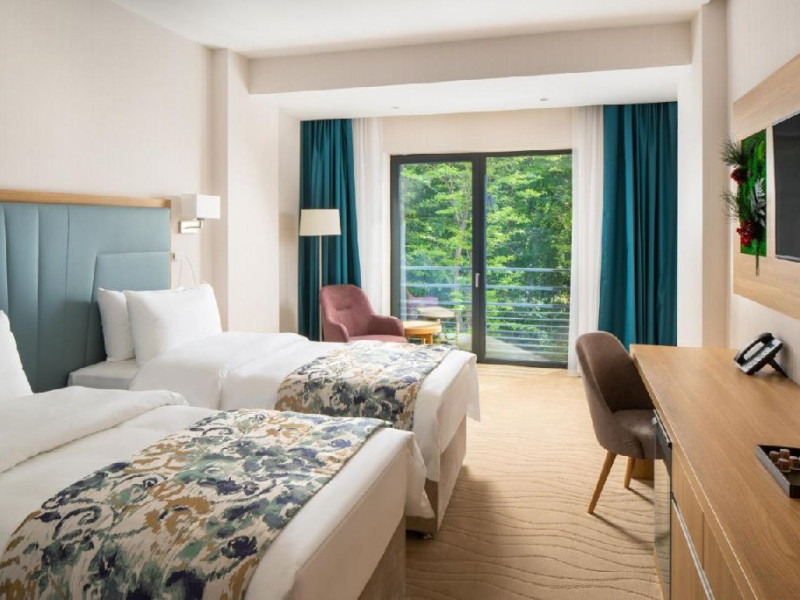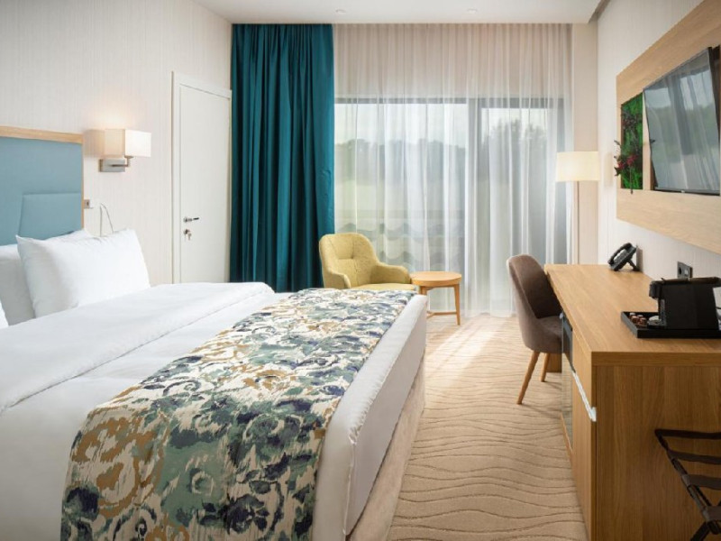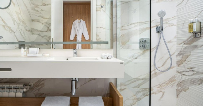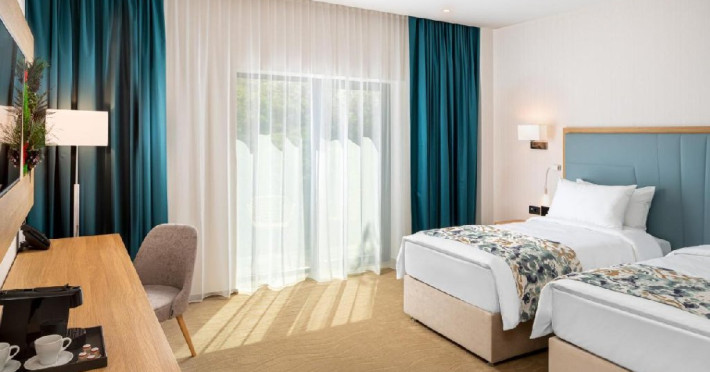 Toate camerele sunt dotate cu aer conditionat, baie cu dus, Wi-Fi, cosmetice, seif, TV, minibar, espressor, uscator de par, papuci si halate.