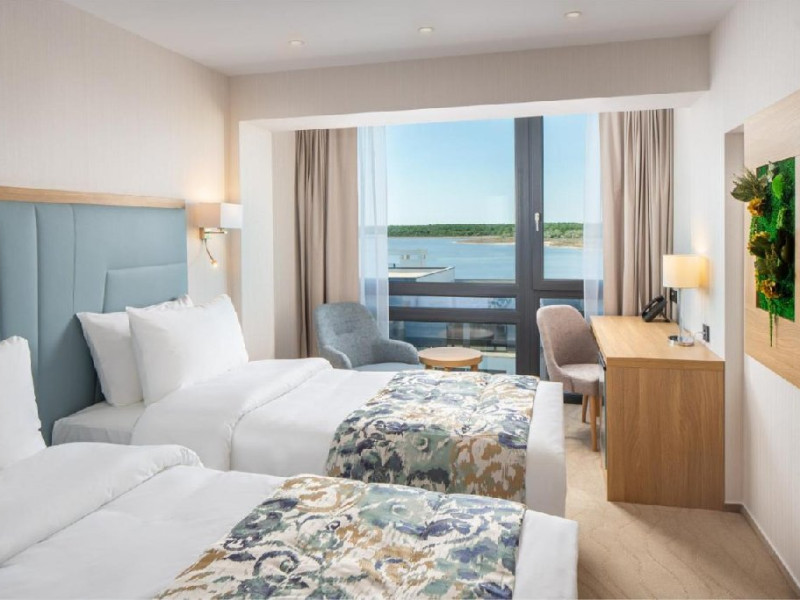 De asemenea, turistii se pot bucura de un parc acvatic cu trei piscine si tobogane, plaja privata cu 1000 sezlonguri, beach baruri si restaurante pe plaja, teren multisport pentru fotbal, baschet, tenis de camp, excursii optionale cu ghid in Braila, plimbari cu vaporul pe Dunare, acces direct de pe plaja la Lacul Sarat pentru baie si terapii cu namol, dusuri exterioare cu apa calda.