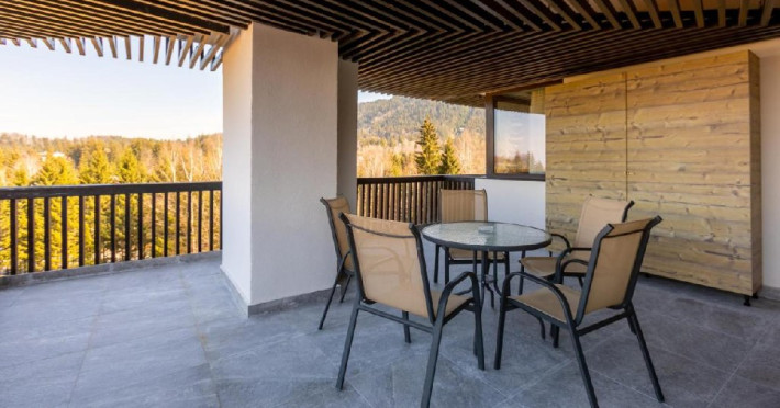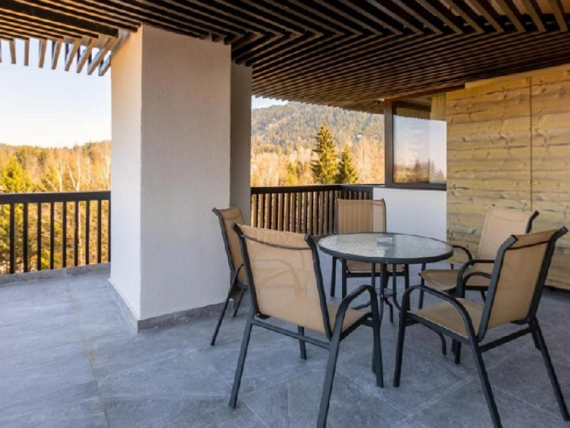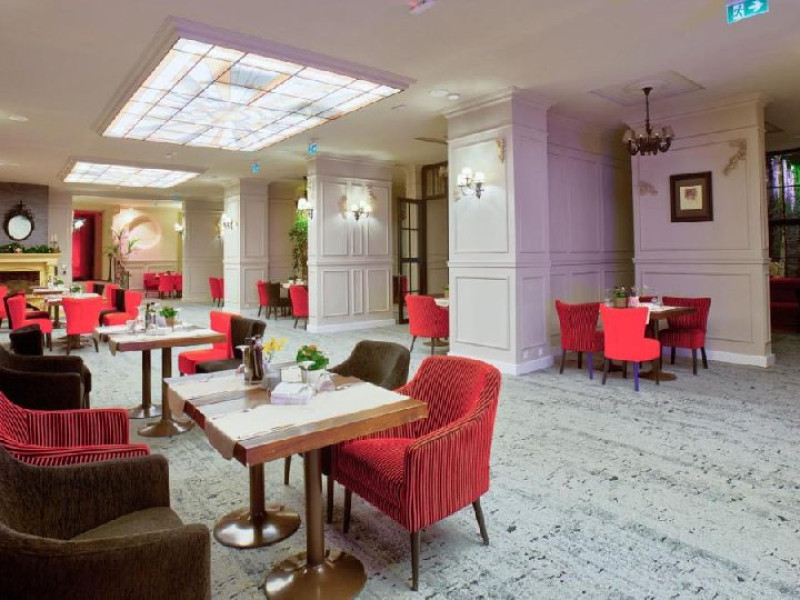 Restaurantul A Propos are vedere la muntii din jur si serveste preparate internationale si vinuri rafinate. Restaurantul Tosca ofera un mic dejun bogat tip bufet in fiecare dimineata. In zona receptiei oaspetii pot asculta zilnic, intre orele 17:00 si 19:00 muzica de pian live. Restaurantul italienesc Gatsby si restaurantul traditional Forest servesc preparate romanesti si internationale.