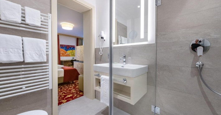 Fiecare dintre camerele in stil alpin este dotată cu un stil tipic salzburgesc, un TV cu ecran plat și un balcon.