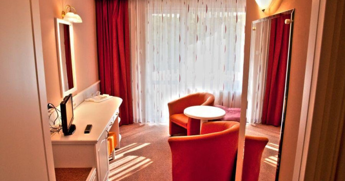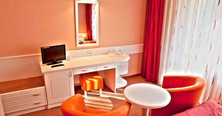 Camere unitate:nbsp;Camere duble sunt dotate cu pat matrimonial sau twin, balcon, Tv, telefon, minibar, baie cu cabina de dus sau cada, articole de toaleta, halate de baie, uscator de par.