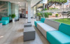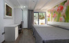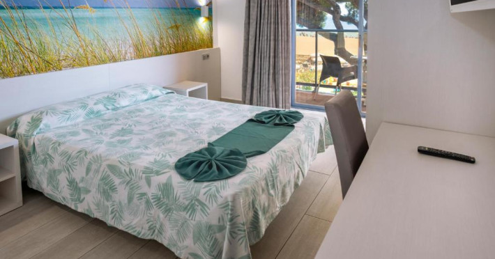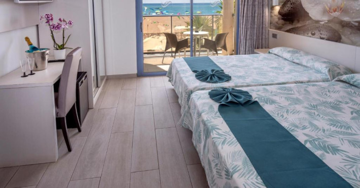 Camerele luminoase și moderne beneficiază de balcoane private, majoritatea cu vedere spre Marea Mediterană. Oaspeții se pot bucura de două piscine exterioare, una dintre ele fiind infinity pool cu vedere panoramică spre mare, precum și de un centru spa dotat cu saună și zonă de relaxare.