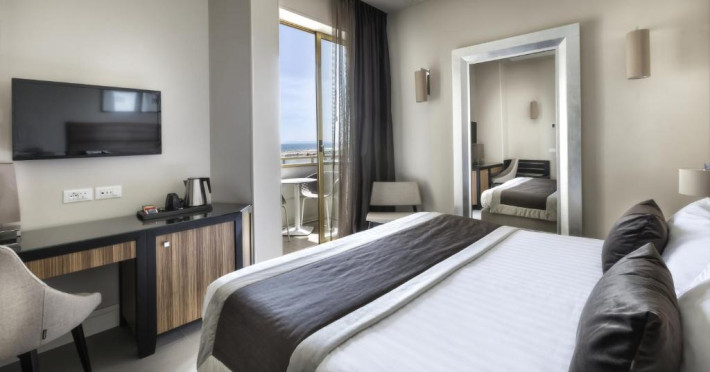 Rooms include a minibar and offer views of the sea or the city. Some rooms are complete with soft bathrobes.