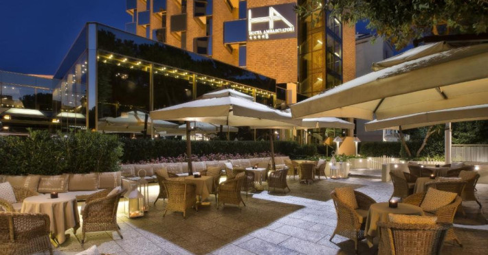 The Ambasciatori is provided with a fitness centre, with Technogym equipment, relaxation area, Turkish sauna, and jet showers. The large swimming pool is open from May to September.