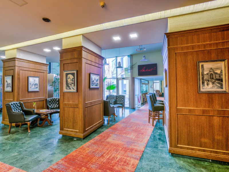 Your vacation should be comfortable! Hotel Hotel Ambient is located in Brasov. This hotel is located 1 km from the city center.Your vacation should be comfortable! Hotel Hotel Ambient is located in Brasov. This hotel is located 1 km from the city center.Spend an evening in a nice atmosphere of the bar. Its time to have a nice meal! Stop by the restaurant. The hotel cafe is a nice place to have a snack. There are several meal options: full board and half board.Free Wi-Fi on the territory will help you to stay on-line. If you travel by car, theres a parking zone. The beauty and wellness services: a massage room, a sauna and a doctor. Sports fans will be able to enjoy a fitness center and a gym.The following services are available At the hotel for winter sports fans: a skiing area and snowboards. The tour assistance desk of the hotel will help you book an excursion. For the free movement around the city, the hotel offers a transfer for you. Accessible for guests with disabilities: the elevator helps them to go to the highest floors.There are other services available for the guests of the hotel. For example, a laundry, an ATM, ironing, car rental and a concierge. The staff of the hotel will be happy to talk to you in English, Spanish, Italian and German.Spend an evening in a nice atmosphere of the bar. Its time to have a nice meal! Stop by the restaurant. The hotel cafe is a nice place to have a snack. There are several meal options: full board and half board.Free Wi-Fi on the territory will help you to stay on-line. If you travel by car, theres a parking zone. The beauty and wellness services: a massage room, a sauna and a doctor. Sports fans will be able to enjoy a fitness center and a gym.The following services are available At the hotel for winter sports fans: a skiing area and snowboards. The tour assistance desk of the hotel will help you book an excursion. For the free movement around the city, the hotel offers a transfer for you. Accessible for guests with disabilities: the elevator helps them to go to the highest floors.There are other services available for the guests of the hotel. For example, a laundry, an ATM, ironing, car rental and a concierge. The staff of the hotel will be happy to talk to you in English, Spanish, Italian and German.In the room, for you, there is a TV and a mini-bar. The room equipment depends on its category.In the room, for you, there is a TV and a mini-bar. The room equipment depends on its category..unspecified EUR not included 45.1 EUR not included 30 per room per night.1 EUR not included 20 per guest per night.RON not included 3 per guest per night off side. airport not included 0 one wayMeals when staying in an extra bed are not included in the fare and are paid on the spot.Comfort rooms are located in a 3* building. These rooms do not have air conditioning. There is no elevator in the 3* building.Triple rooms are not guaranteed a special bed.Datorita dinamicitatii domeniului disponibilitatea ofertelor se modifica de la un moment la altul. De aceea ofertele sunt valabile in limita locurilor disponibile. Agentia nu este responsabila pentru eventualele neconcordante care pot aparea intre informatiile privind tarifele si alte detalii din site si informatiile primite in agentie. In aceste cazuri vor avea prioritate, intotdeauna, informatiile primite in agentie.