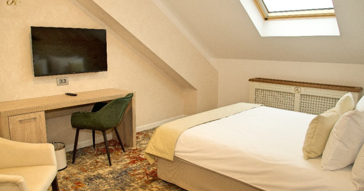 Camerele duble mansardate se afla la etajul 4 al hotelului, sunt mai mici in dimensiuni, nu au balcon dar sunt dotate cu aer conditionat.