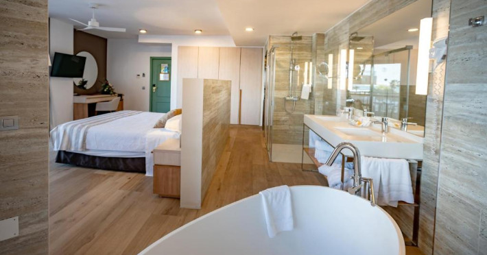 Situat pe promenada de pe malul mării din Fuengirola, Hotelul Angela oferă un centru de wellness și o piscină infinită in aer liber. Camerele sale cu aer condiționat au TV prin satelit și un balcon privat cu vedere la mare.