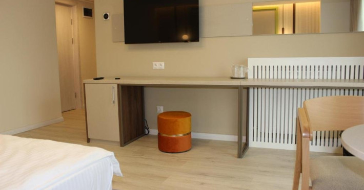 Camere: Camerele sunt dotate cu pat matrimonial, sistem de aer conditionat centralizat, balcon. baie cu dus walk-in. Toate camerele sunt dotate cu aer conditionat, acest serviciu fiind inclus in tariful de cazare