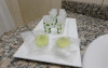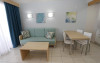 Fiecare apartament are pardoseală din gresie și mobilier simplu, din lemn. Unele apartamente sunt potrivite cu aerul și terasă proprie. Chicinetele sunt utilate cu frigider, plită și ustensile pentru gătit. De asemenea, se oferă seif și TV cu ecran plat.