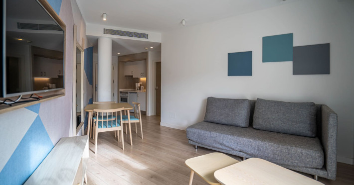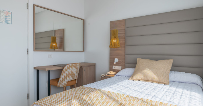 About 100 m from a public sandy beach is located the 4 star aparthotel Hotel y Apartamentos Leman. The nearest bars and restaurants are located directly next to the building. The old town is around 14 km away. The nearest shops you can reach within around 100 m, a supermarket is around 600 m away. On the beach are beach towels available. Directly next to the beach there is a promenade where you can take leisurely walks. The seasonally air-conditioned hotel has a 24h reception (check-in is possible around the clock), a lobby bar, Wi-Fi, internet access, 2 lifts, showers and changing rooms, a first aid kit as well as a TV lounge with satellite TV. In the outdoor area you will find a garden as well as a seasonally heated and supervised pool that is open seasonally (open all year), where you can rent pool towels for a fee and sun loungers and sun umbrellas are available for free. For children there is also a separate children's pool. Furthermore, outside you can find a sun terrace. Inside the hotel you can use a heated indoor pool. Your valuables can be stored in the hotel safe (extra fee). In addition, the hotel Hotel y Apartamentos Leman is video-monitored 24h a day. For the young hotel guests there is a playground. For very young guests, cots can also be provided. There is also a laundry service available at an additional cost to customers. For your comfort there is a concierge service. Guests at the accommodation can get a wake-up call from the hotel personnel. The energy supply is 220 Volts. If you want to explore the holiday region, you can use the car and motorbike rental service close to the hotel. In addition, the hotel sells tickets for excursions. In your hotel, a lot of focus is placed on sustainability. This includes the hotel`s own recycling bins, the provision of soap, shampoo and lotion dispensers, a central room air-conditioning and environmentally-friendly cleaning. For water may incur extra charges at the hotel. The hotel requires that all guests pay a deposit upon arrival. American Express, Euro/Master Card and Visa are accepted as means of payment. Catering Breakfast is offered from the buffet (extras on request). Dinner is also served as a buffet with starters, salads and desserts (extras on request). For the meals, there are a buffet restaurant (gluten-free dishes) and a bar as well as the cafeteria. The drinks menu of the hotel includes soft drinks, beer and wine. For dinner, guests are asked to wear appropriate clothing in the restaurant. Distances