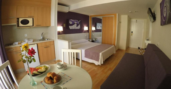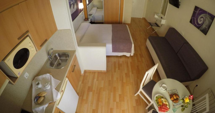 Facilitati studio: pat matrimonial sau twin, baie proprie, seif (contra cost), aer conditionat, telefon, uscator de par, TV prin satelit, chicineta, terasa.