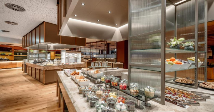 Restaurantele cu un decor elegant servesc preparate din bucătăria regională și internațională, precum și mancăruri sănătoase. Oaspeții se pot delecta cu băuturi in lounge, la bar si la barul de vinuri plăcut, care are un șemineu și canapele din piele.