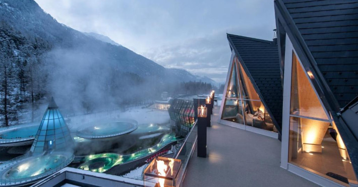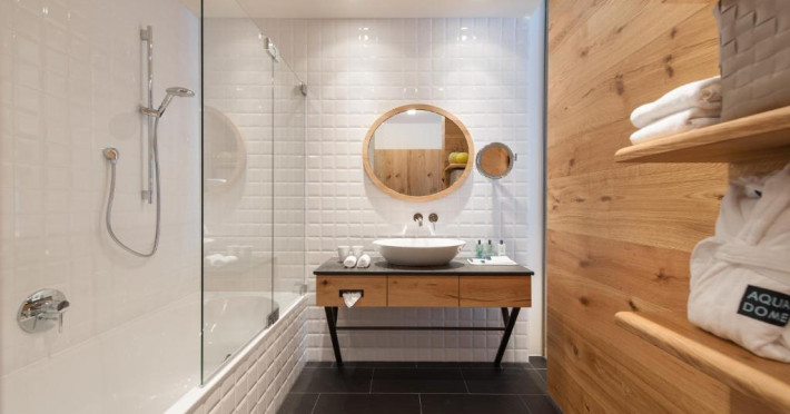 Arhitectura spectaculoasă a Hotelului Aqua Dome se integrează armonios in cadrul natural inconjurător. Oaspetii beneficiază de acces gratuit la zona de wellness a hotelului, unde există facilități spa ce ocupă o suprafață de 2 hectare.