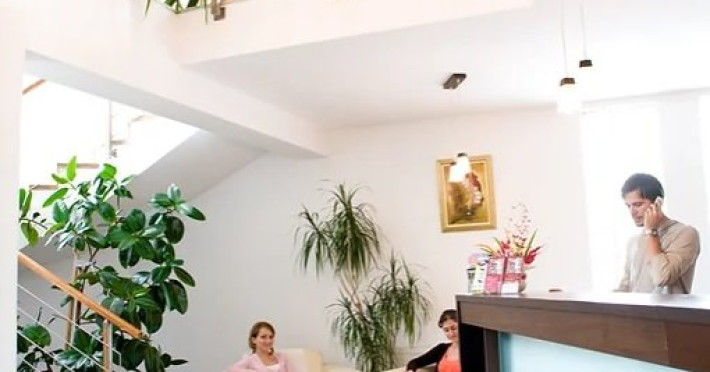 Curtea interioara a fost modificata pentru a putea cuprinde pana la 15 locuri de parcare cu acces rapid din zona de receptie si din holul hotelului (parcarea este contra cost). Spatiile destinate parcarii sunt supravegheate video, intimitatea oferita de curtea hotelului fiind intregita de siguranta.
