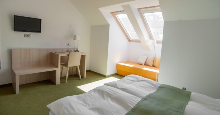 Camera executiva twin: Camera spatioasa (30m2) cu decor elegant, vedere la munte, vedere la oras, zona de relaxare, TV cu ecran plat cu canale prin cablu, WiFi gratuit, birou, minibar, articole de toaleta gratuite, uscator de par si fier de calcat cu masa de calcat, aparat de ceai, aparat expresso, seif in camera, aer conditionat cu 4 trepte de turatie, camera de nefumatori,