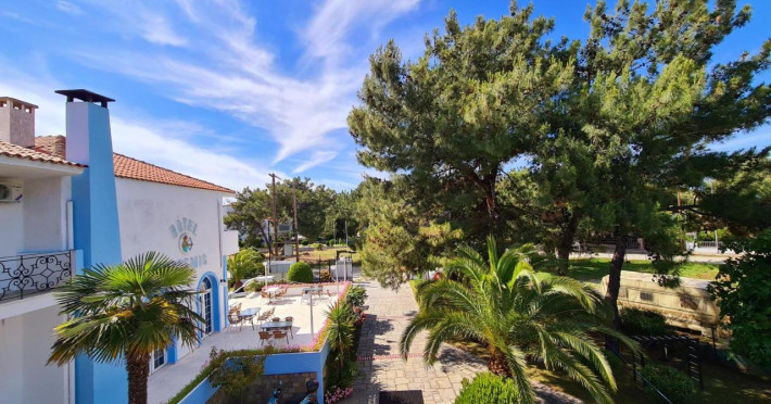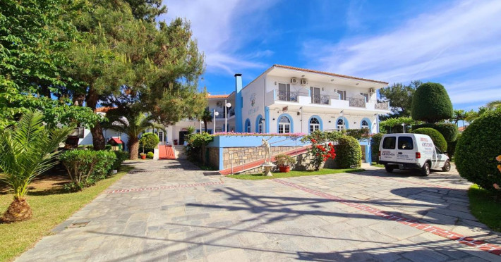 Hotelul Artemis este situat la aproximativ 50 m distanță față de plajă, într-o zonă linistită din Skala Prinos. Lângă intrarea în hotelul Artemis, există o piață care oferă o varietate de produse locale. Portul Skala Prinos cu numeroase taverne, restaurante, mini marketuri și magazine se află la aproximativ 500m de hotel.