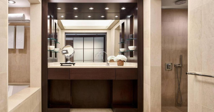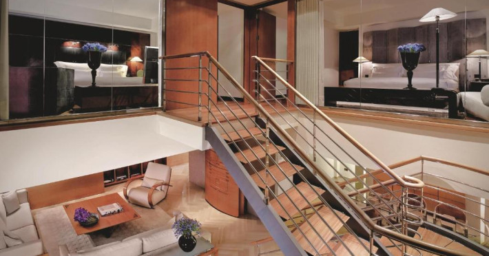 Restaurantul Enoteca al hotelului, premiat cu 2 stele Michelin, servește preparate rafinate din bucătăria mediteraneană. Hotelul are o serie de alte baruri și restaurante, inclusiv un bar langă zonă, care servește mesele ușoare in timpul verii.