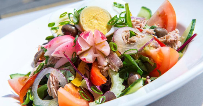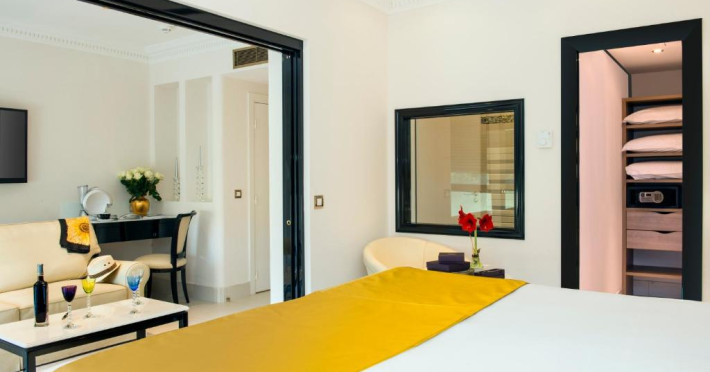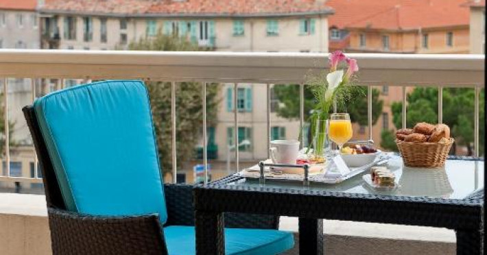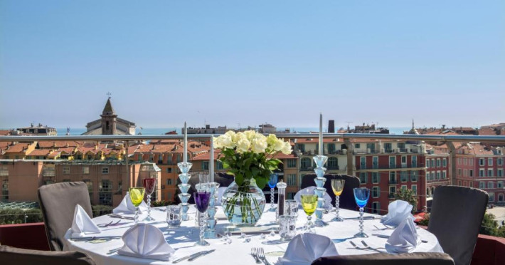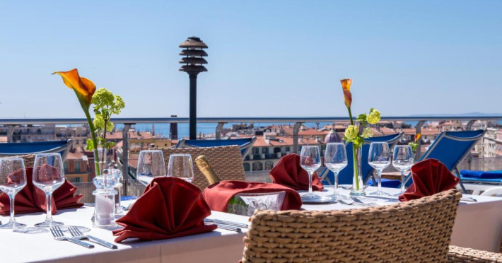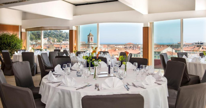 Puteti savura un mic dejun tip bufet si preparate din bucătăria regională la restaurantul L'Horloge de la parter sau pe terasă in lunile de vară. Pentru băuturi, este disponibil barul Le Seven Blue cu vedere la coasta mediteraneană.
